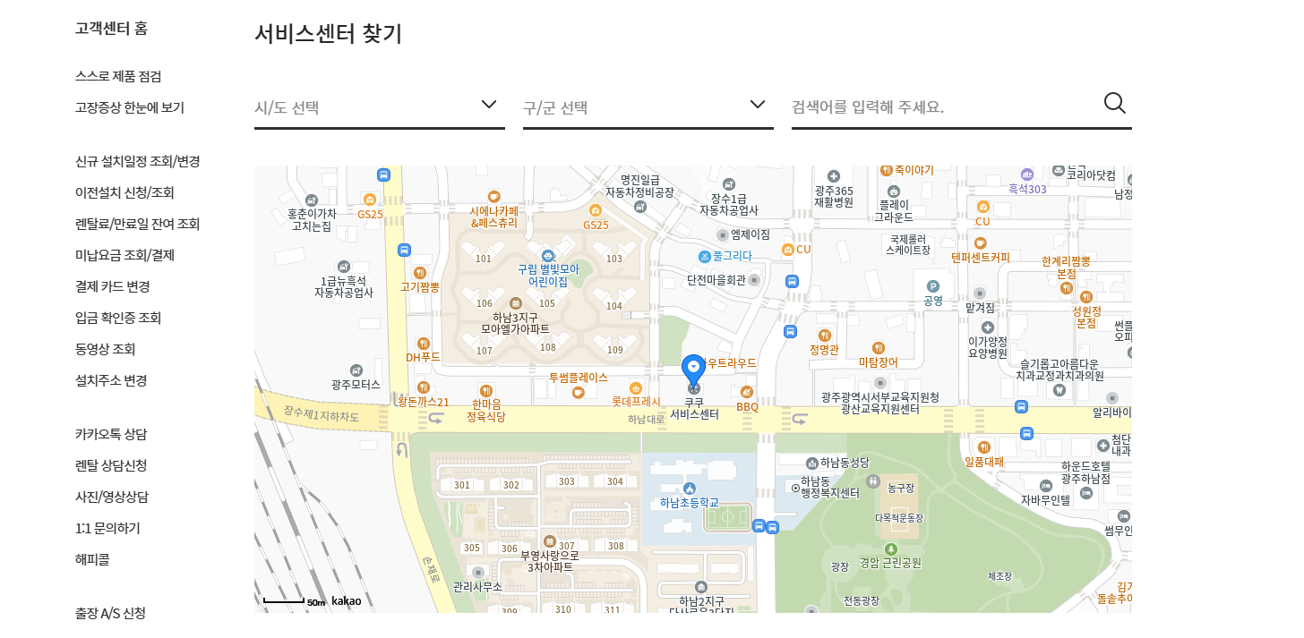 전국 주요 도시에도 쿠쿠 서비스센터가 운영되고 있습니다.
