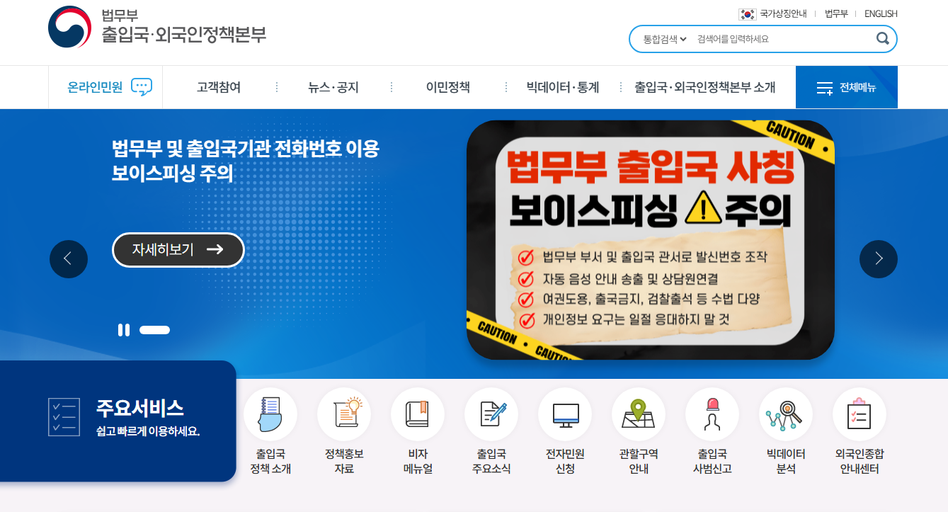 외국인과 내국인의 출입국 관련 업무를 처리하기 위해서는 출입국 관리사무소의 온라인 서비스를 반드시 알아두어야 합니다. 법무부 출입국·외국인정책본부와 하이코리아를 통해 비자, 외국인 등록, 체류 관련 민원을 온라인으로 편리하게 처리할 수 있습니다.