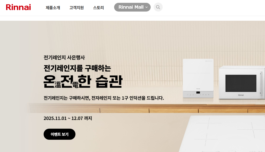 - 브라우저에서 린나이 공식 홈페이지에 접속합니다.